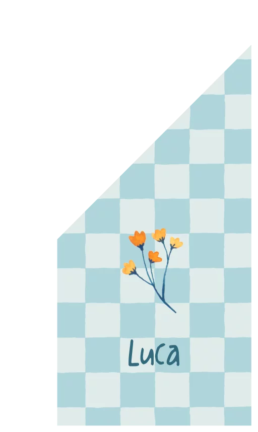 Moderne geboortevlag met blok-patroon en een kleurrijk bloemetje. De vierkante vlakken geven de kaart een moderne uitstraling. Je kan de illustratie van de bloem vervangen door een van de vele illustraties in onze beeldbank.