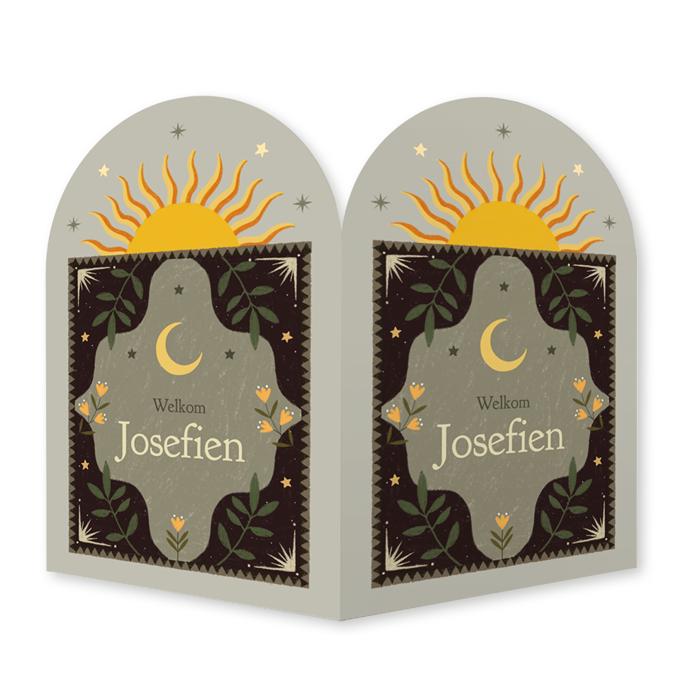 Geboorte raambord met naam | Illustratie met zon, maan en sterren