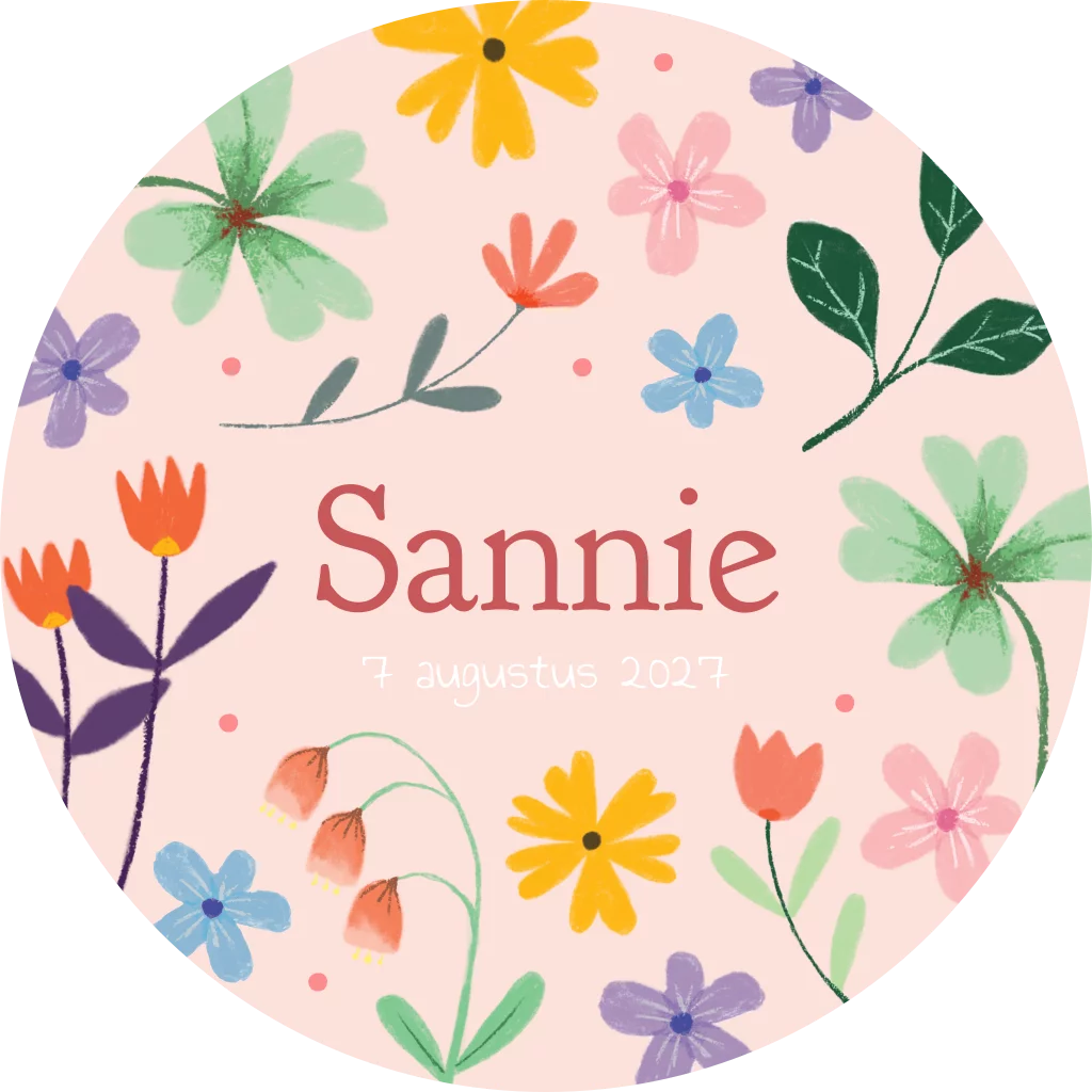 Roze raamsticker 'Sannie' met bloemen – 60 cm rond