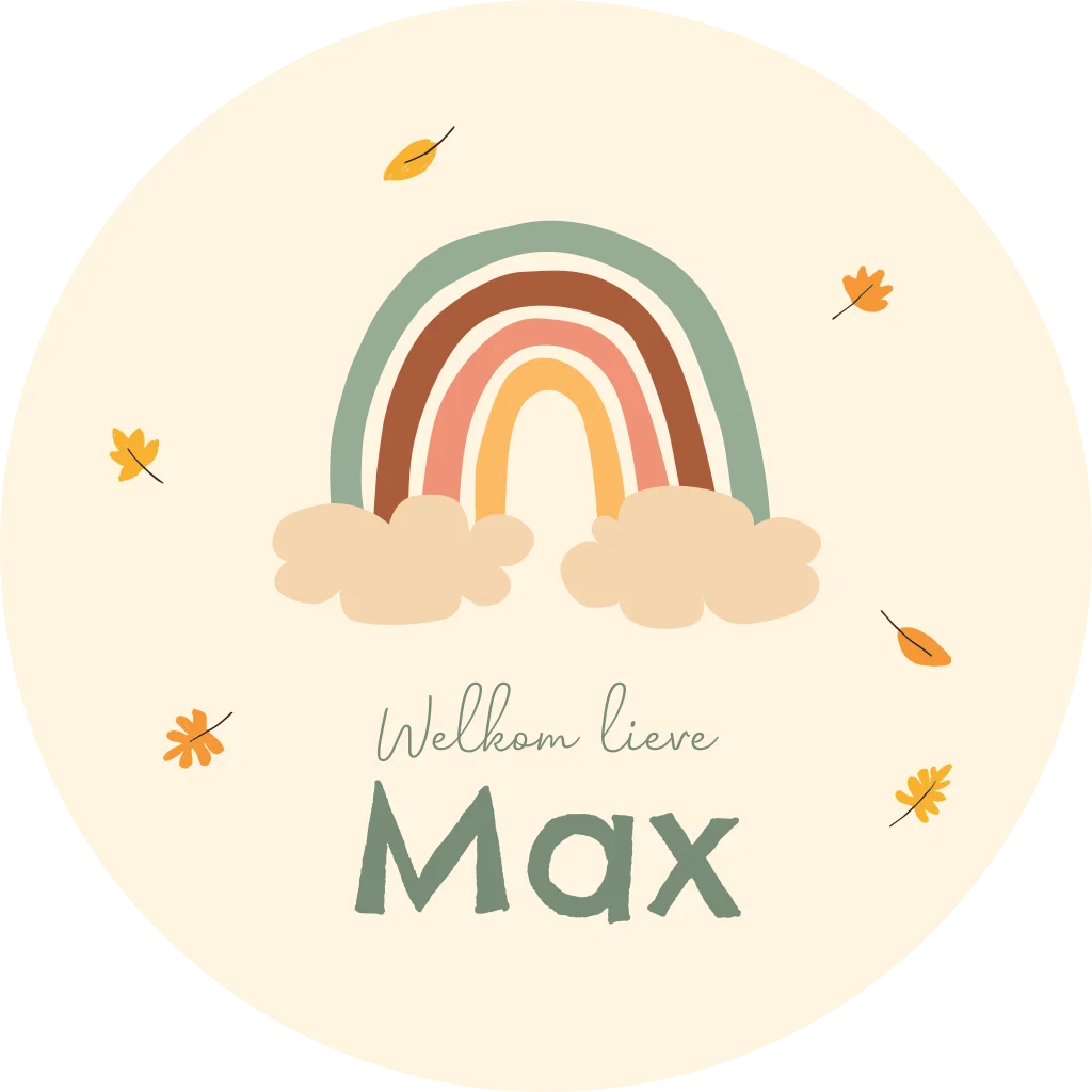 Een mooie raamsticker om te laten zien dat jullie kindje geboren is. Een stoere regenboog in zachte herfst kleuren.