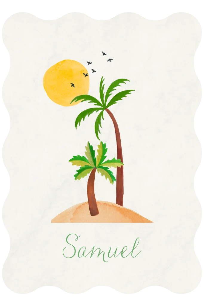 Geboortekaartje met palmbomen en golvende vorm