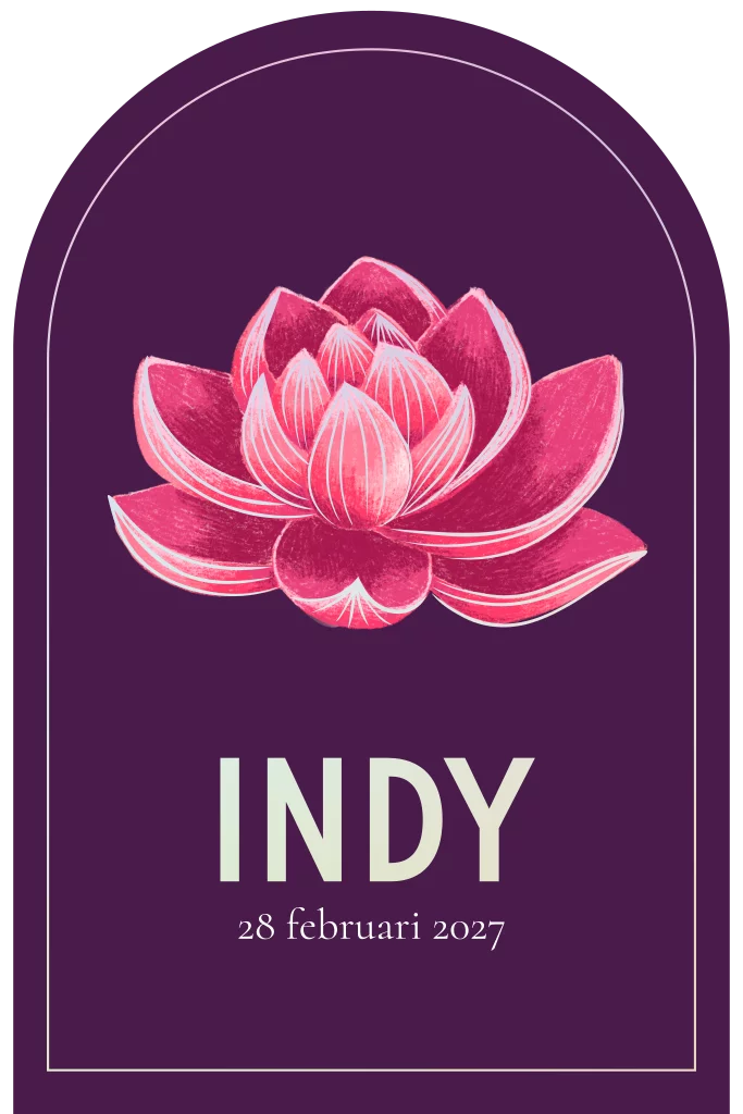 Geboortekaartje Indy | Lotusbloem met regenboog folie