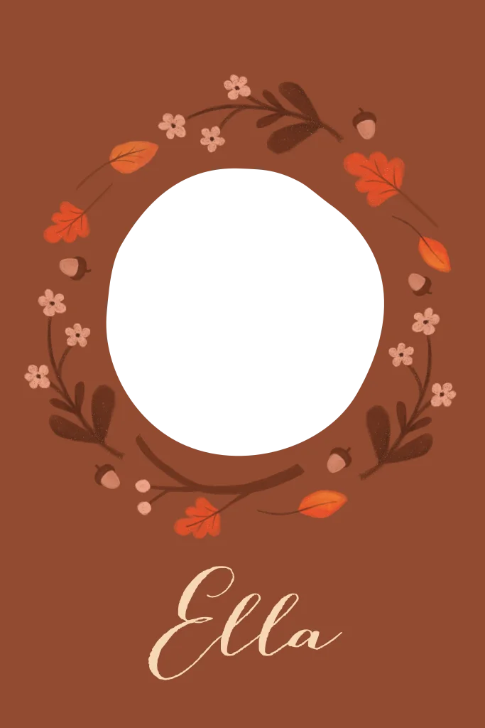 Een origineel geboortekaartje met herfst thema in mooie retro kleuren. In het uitgesneden rondje zie je een illustratie van een roodborstje. De combinatie van bruin en oranje zorgt voor een mooie vintage uitstraling.