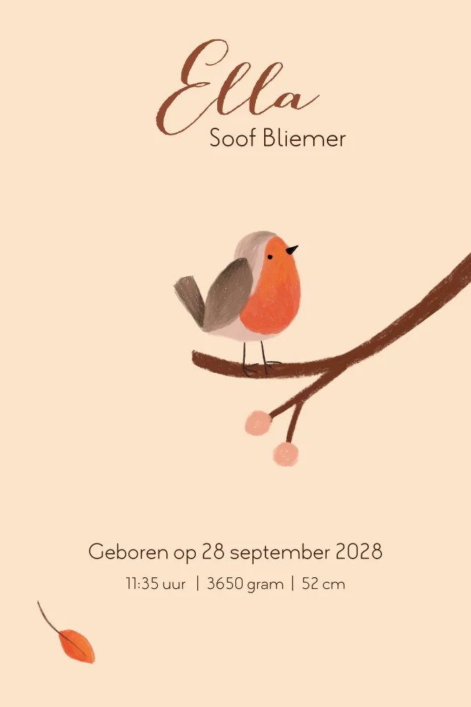 Geboortekaartje Ella | Herfst roodborstje met doorkijkje