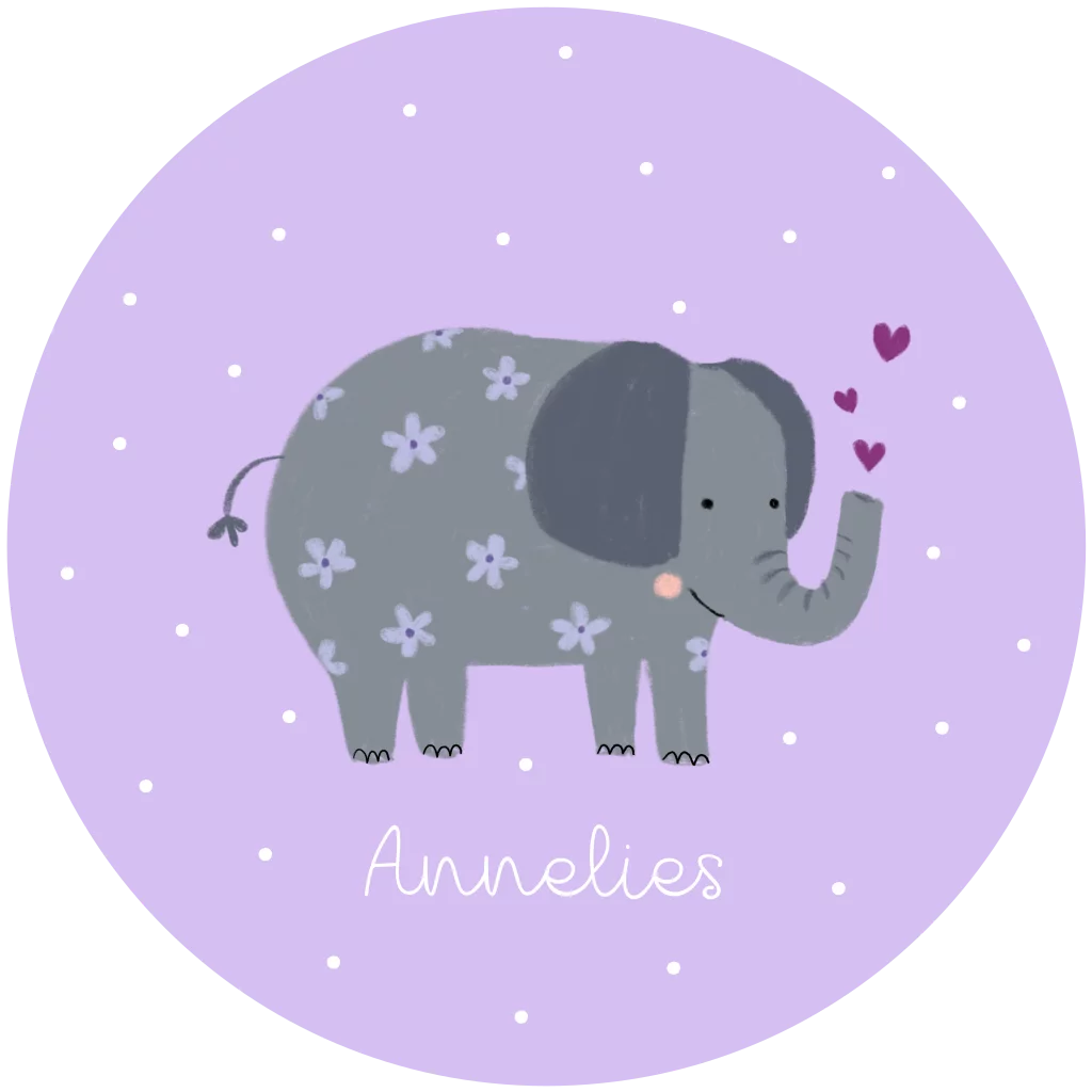 Geboortekaartje Annelies - Ronde vorm met olifantje met bloemen