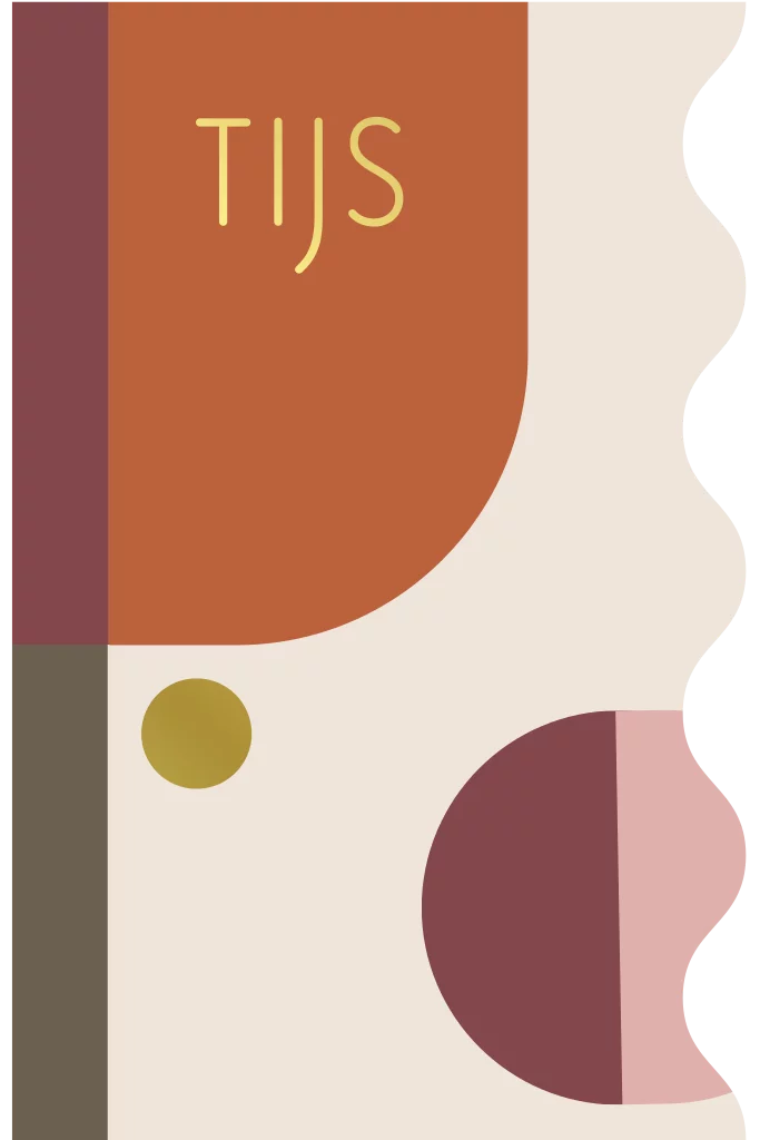 Origineel, abstract geboortekaartje in retro kleuren. Met strakke lijnen, ronde vormen en unieke golvende zijkant. De naam is in glimmende goudfolie voor een luxe uitstraling.
