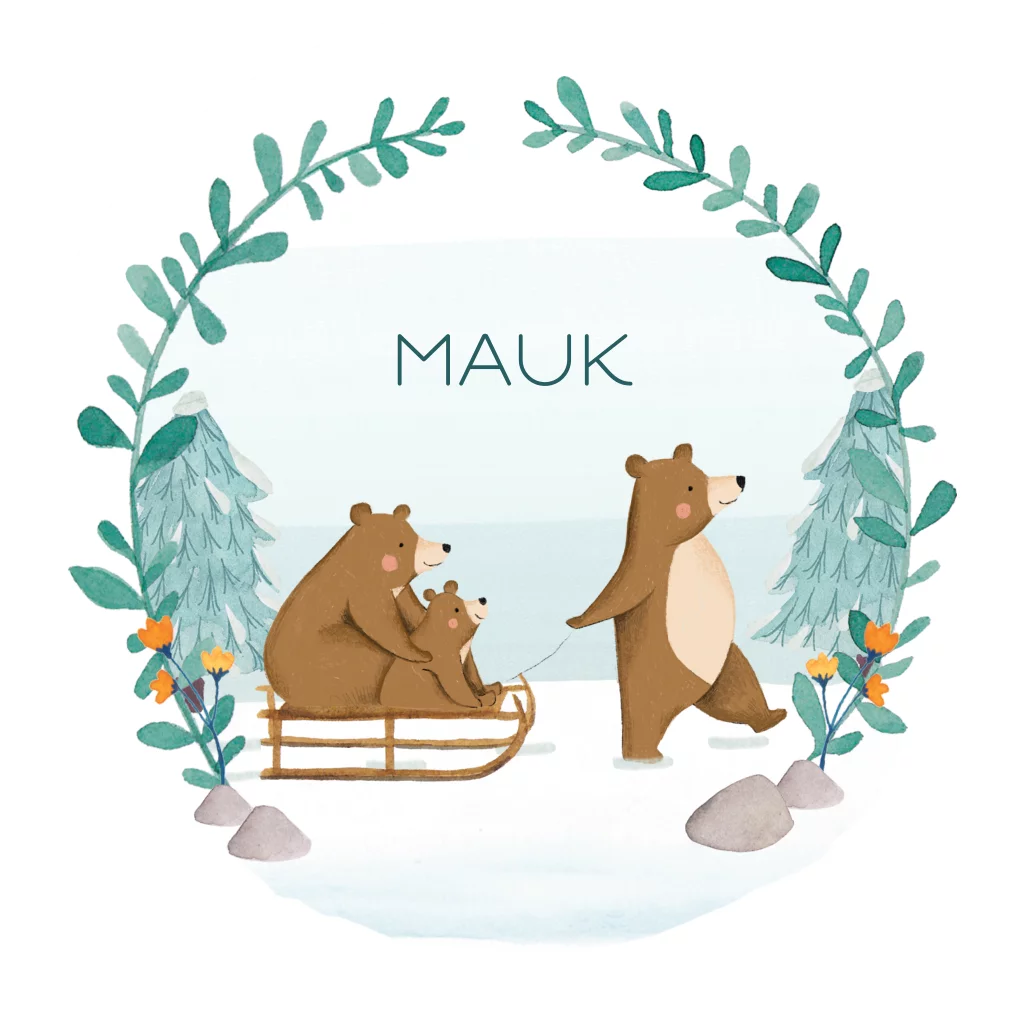 Geboortekaartje Mauk | Beertjes in de sneeuw