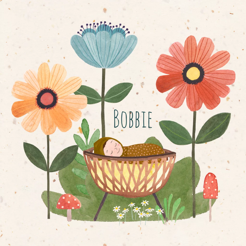 Geboortekaartje Bobbie | Wiegje tussen de bloemen