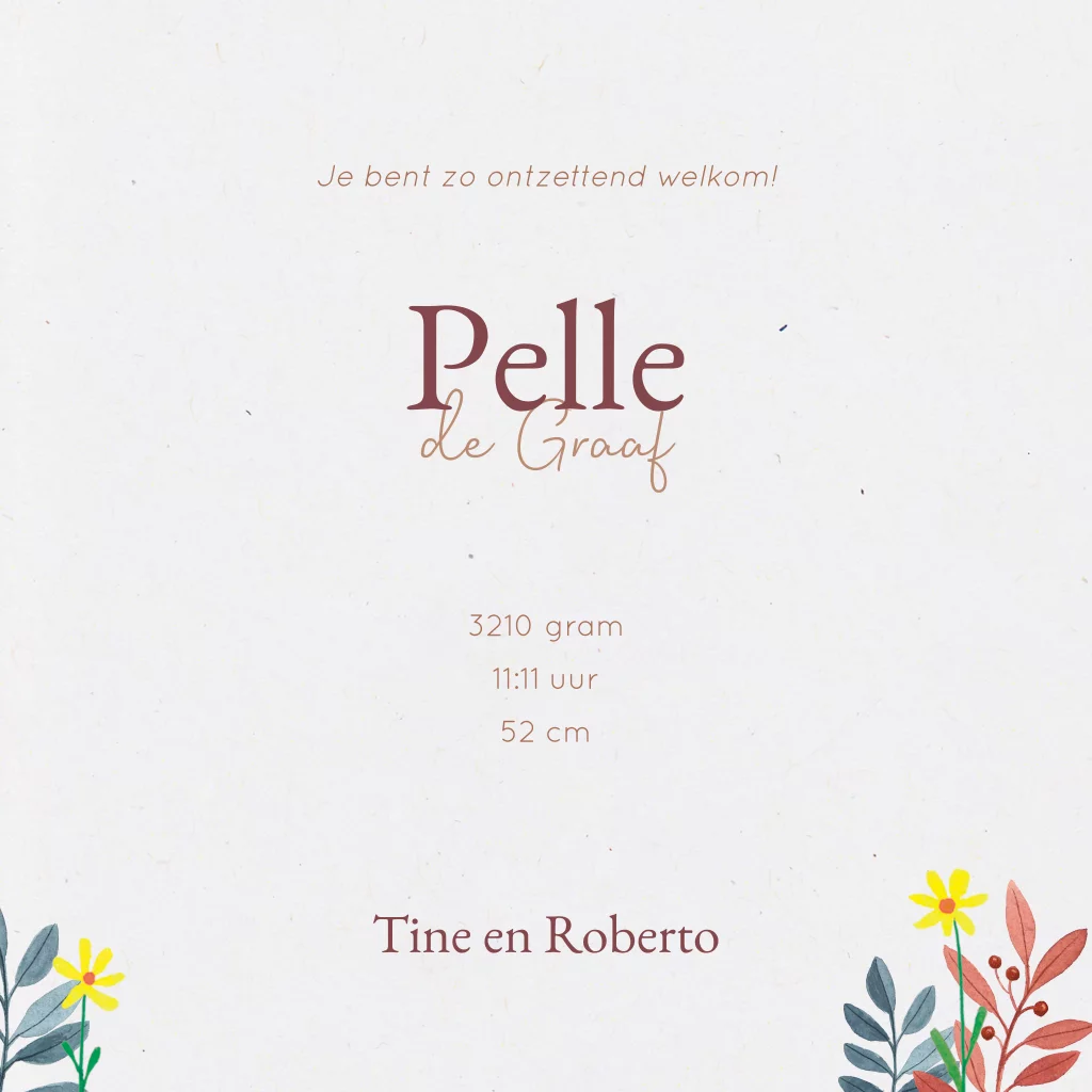 Hulp nodig bij het ontwerpen van je geboortekaartje? Mail me op willeke@studiowam.nl, ik help je graag!