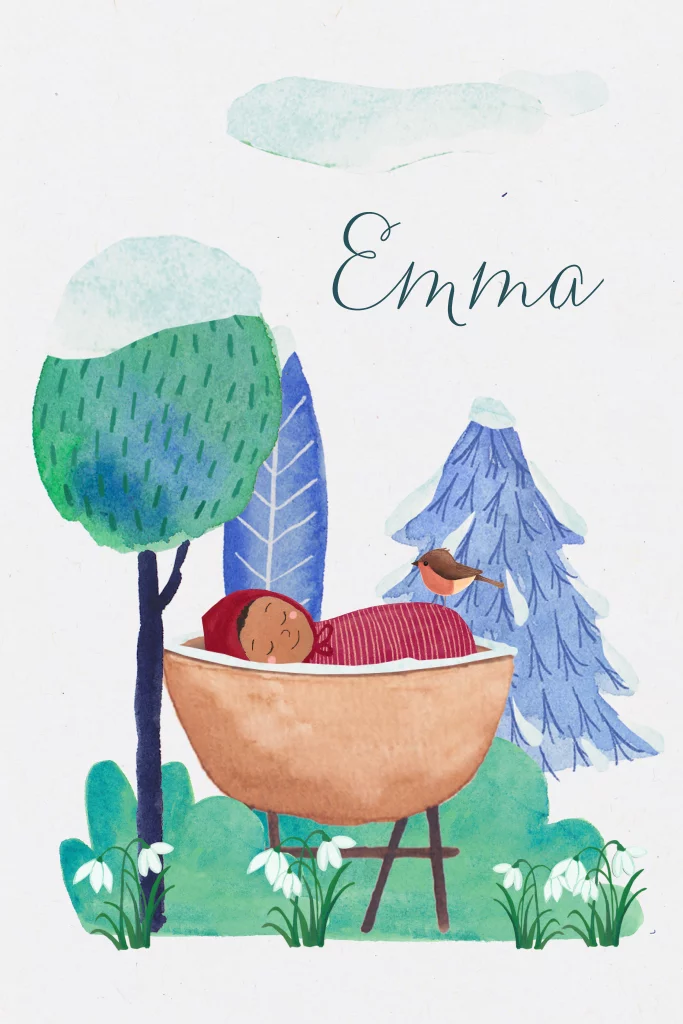 Geboortekaartje Emma - Winters wiegje op duurzaam papier