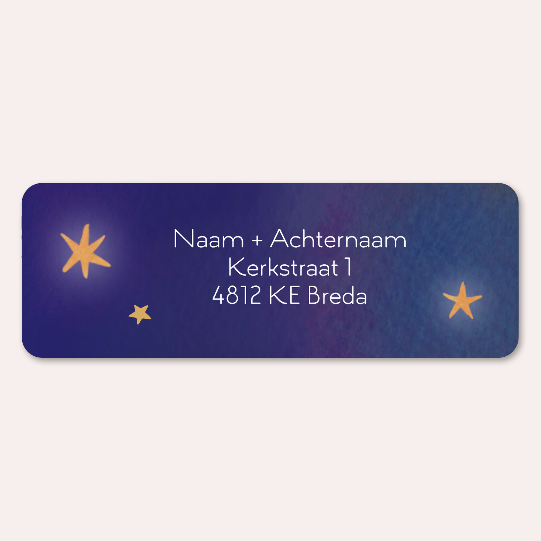 Deze adressticker met aquarel heelal achtergrond met sterren maakt de verzending van jouw geboortekaartjes compleet. Perfect te combineren met het bijpassende geboortekaartje voor een stijlvolle en samenhangende look.