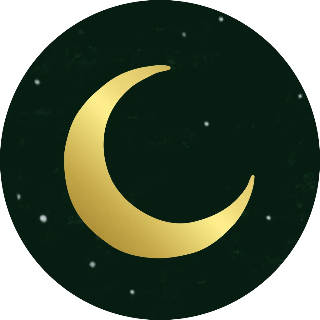 Prachtige sluitzegel met een maantje in goudfolie op donkere sterrenhemel achtergrond. Past mooi bij de spirituele geboortekaartjes van Studio WAM. Ideaal om de enveloppen mee dicht te plakken of de doopsuikers te versieren.