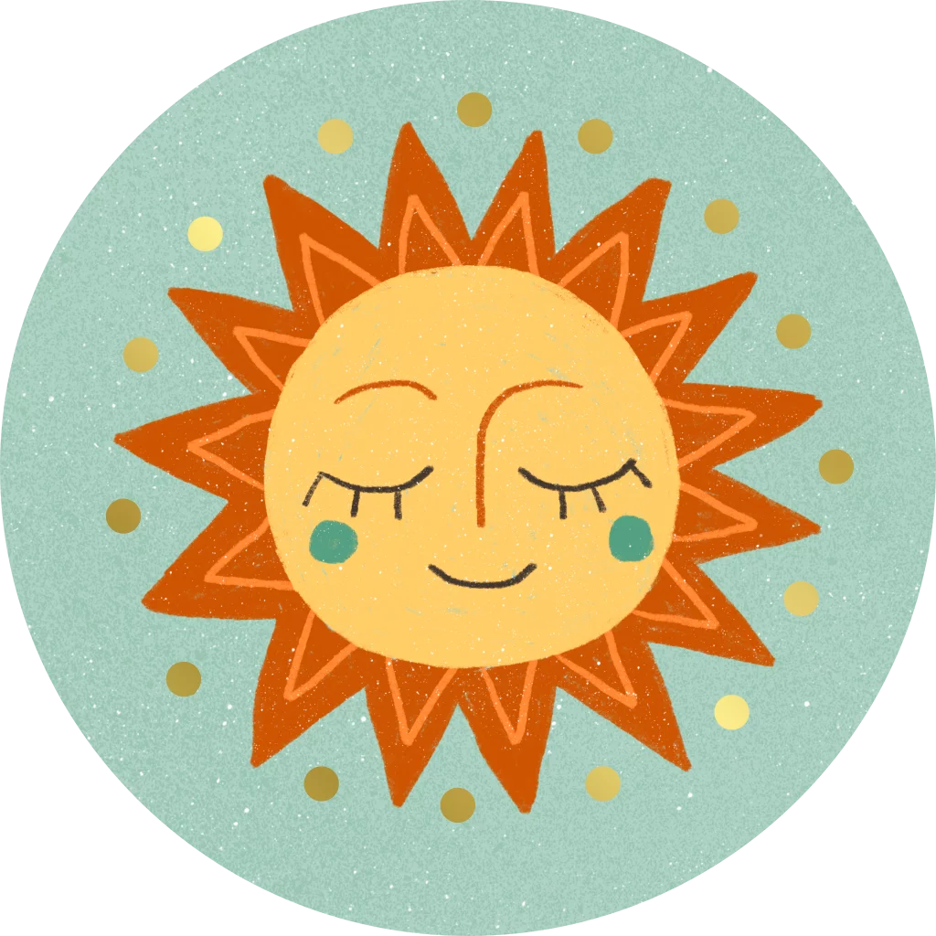 Prachtige sluitzegel met een zon omringd door goudfolie stippen op een groene achtergrond. Er is een bijpassend geboortekaartje beschikbaar. Deze stickers zijn ideaal om de enveloppen mee dicht te plakken of de doopsuikers te versieren.