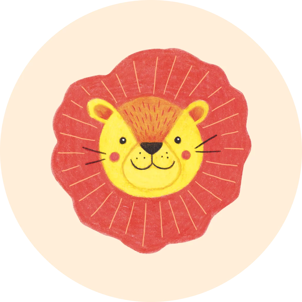 Sluitsticker met lief leeuwtje. De sluitstickers hebben een diameter van 35 mm en worden geleverd op vellen van 25 stuks.
