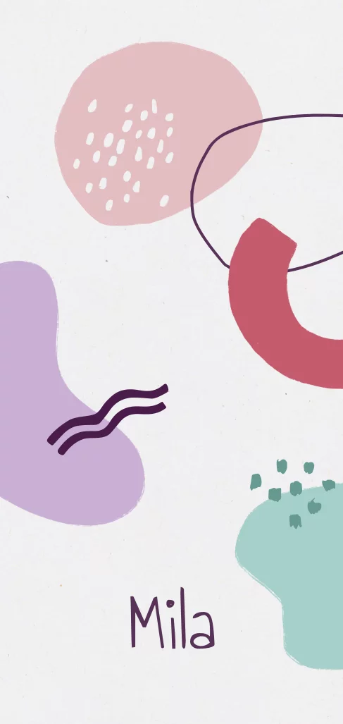 Abstract, grafisch geboortekaartje in prachtige, zachte pasteltinten. Geprint op duurzaam, gerecycled papier.