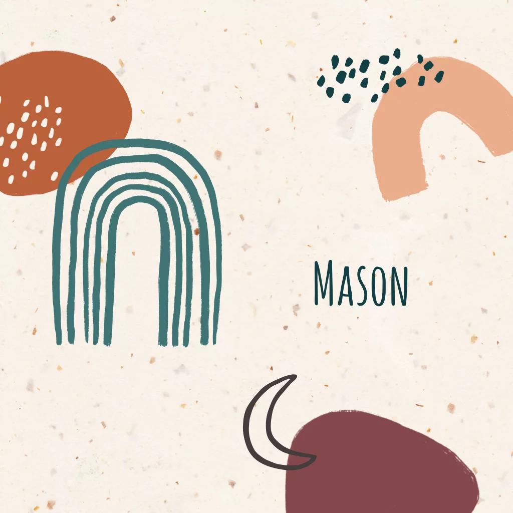 Geboortekaartje Mason | Duurzaam, abstract met regenboog