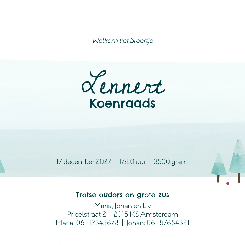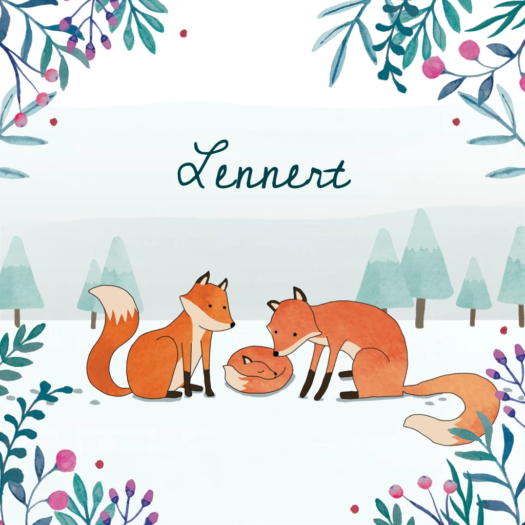 Geboortekaartje Lennert | Winterse vosjes