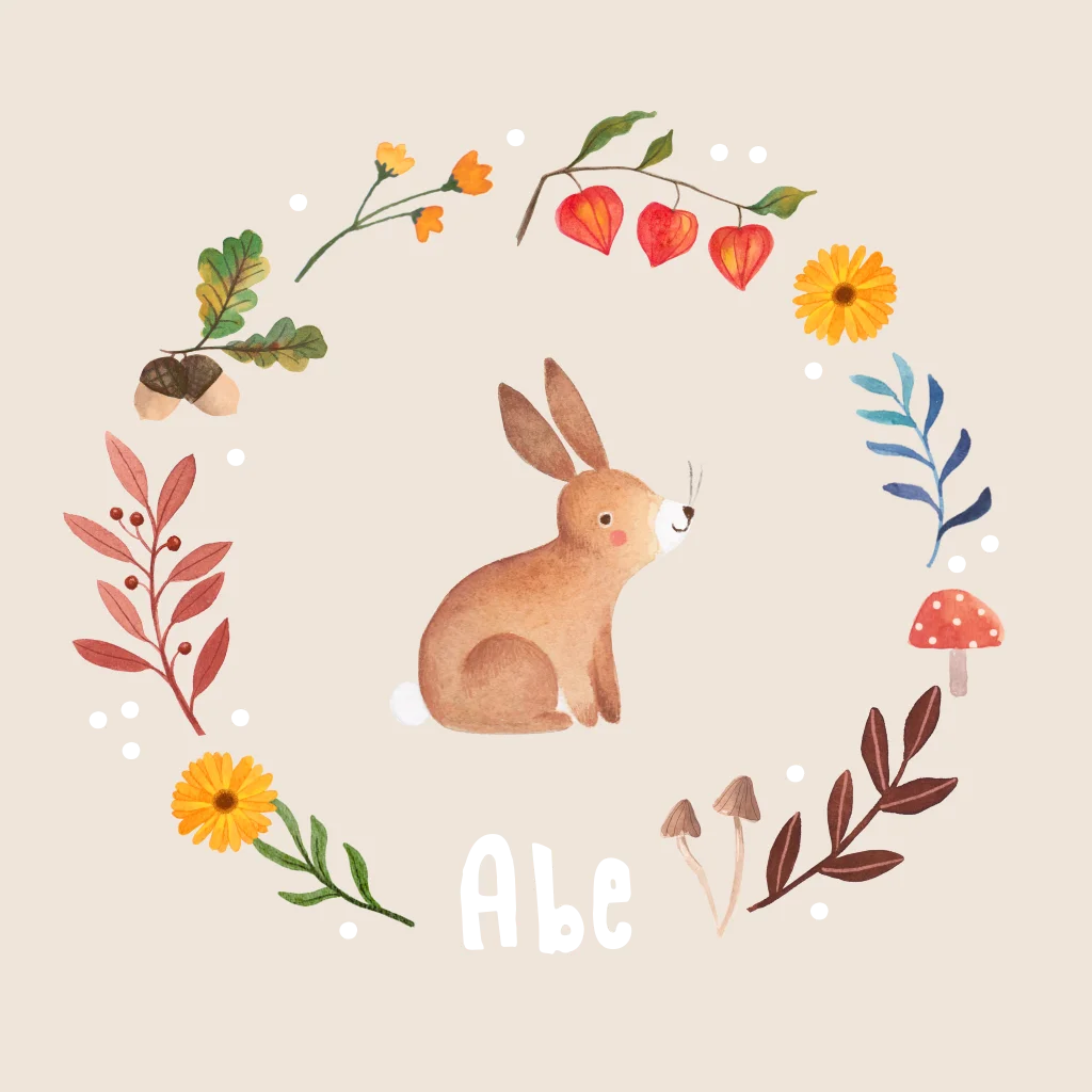 Herfst geboortekaartje 'Abe' met konijntje