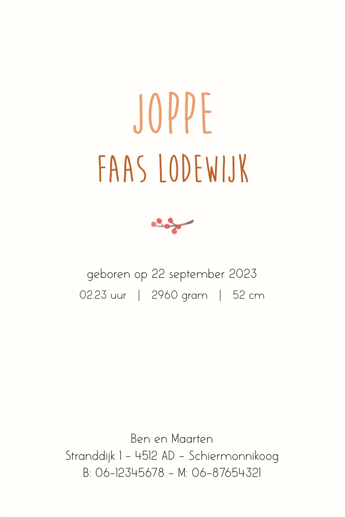Geboortekaartje Joppe - met herfstcirkel