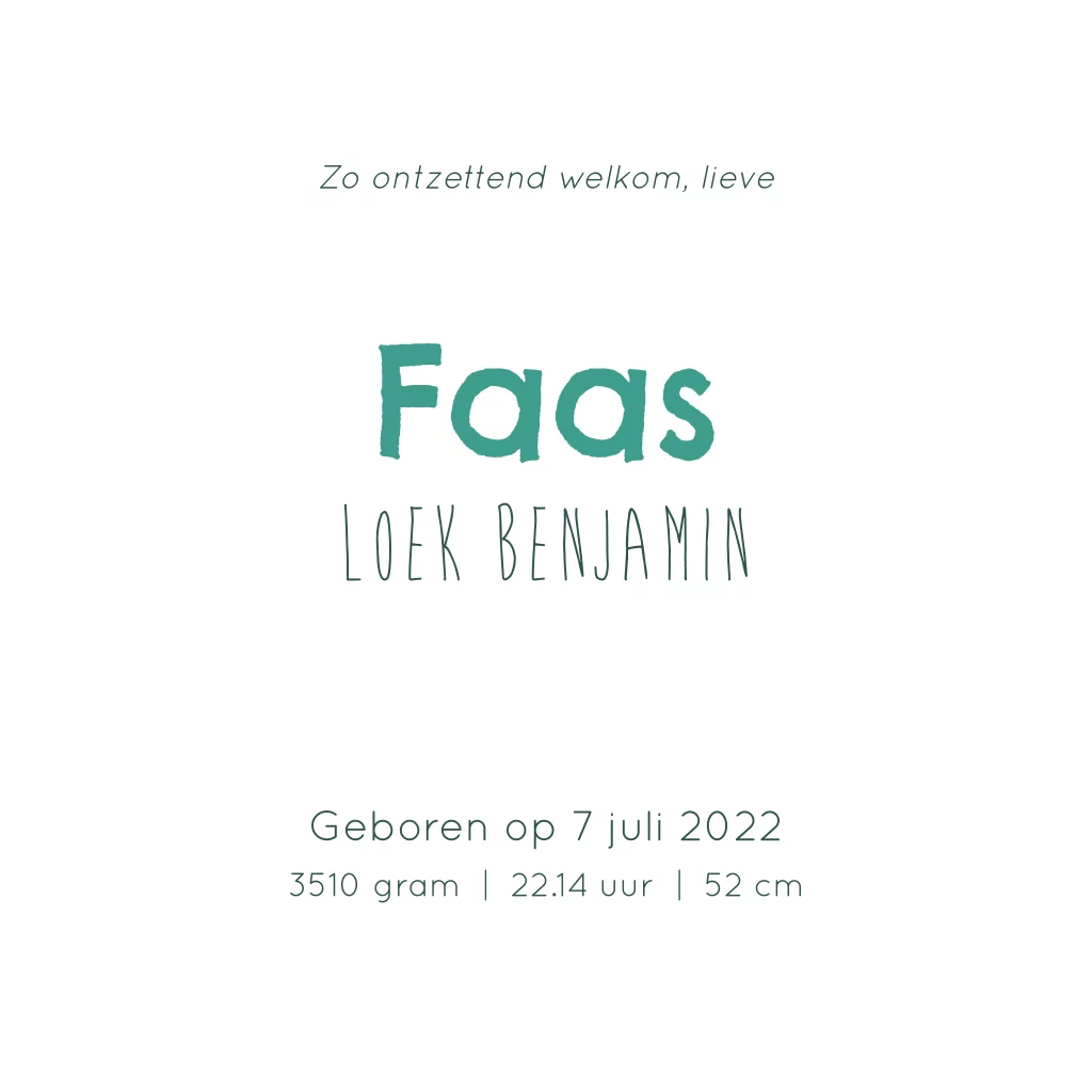 Geboortekaartje Faas | Olifantje groen