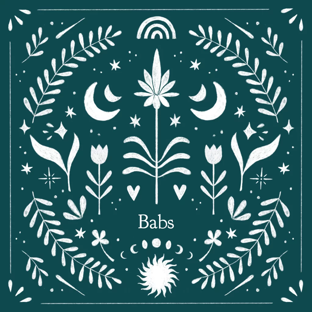 Symmetrisch kaartje met spirituele elementen. De achtergrondkleur is gemakkelijk aan te passen naar een kleur naar keuze.
