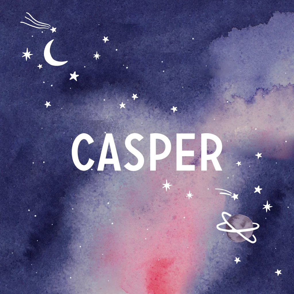 Geboortekaartjes Casper - Heelal met maantje en planeet