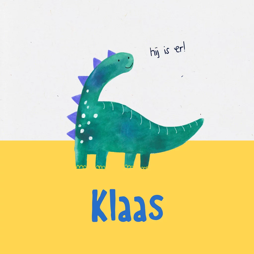 Duurzaam, unisex geboortekaartje | Dinosaurus in aquarel, vierkant, okergeel