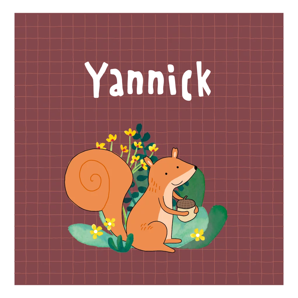 Geboortekaartje Yannick - Eekhoorn in de herfst