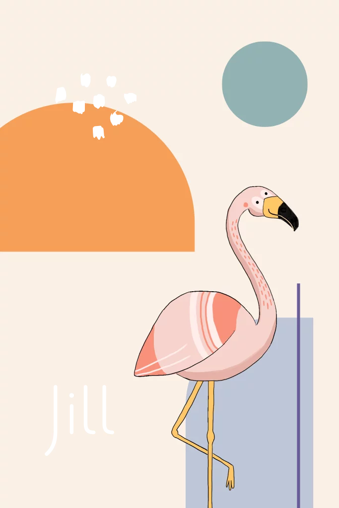 Geboortekaartje Jill | Abstracte vormen en flamingo