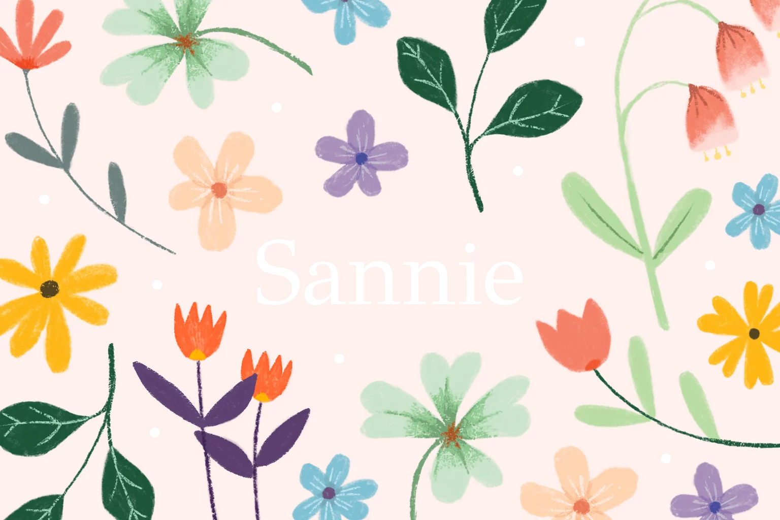 Kleurrijk geboortekaartje met bloemen, plantjes en klavertjes. Mooie gouden elementen maken het kaartje helemaal af.