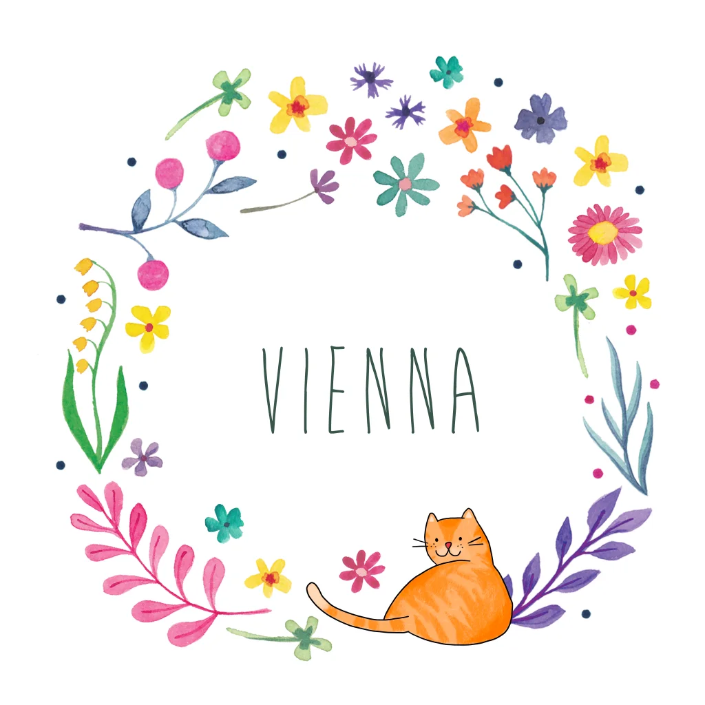 Geboortekaartje Vienna - Bloemencirkel met kat