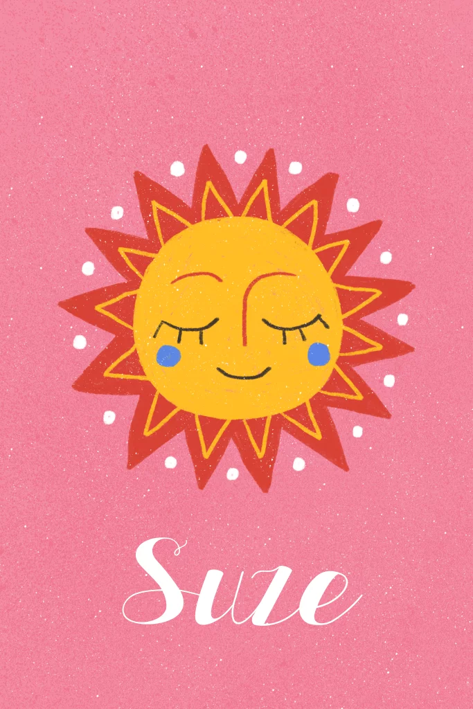 Een uniek geboortekaartje voor een meisje. Met illustratie van een zon op een knalroze achtergrond.