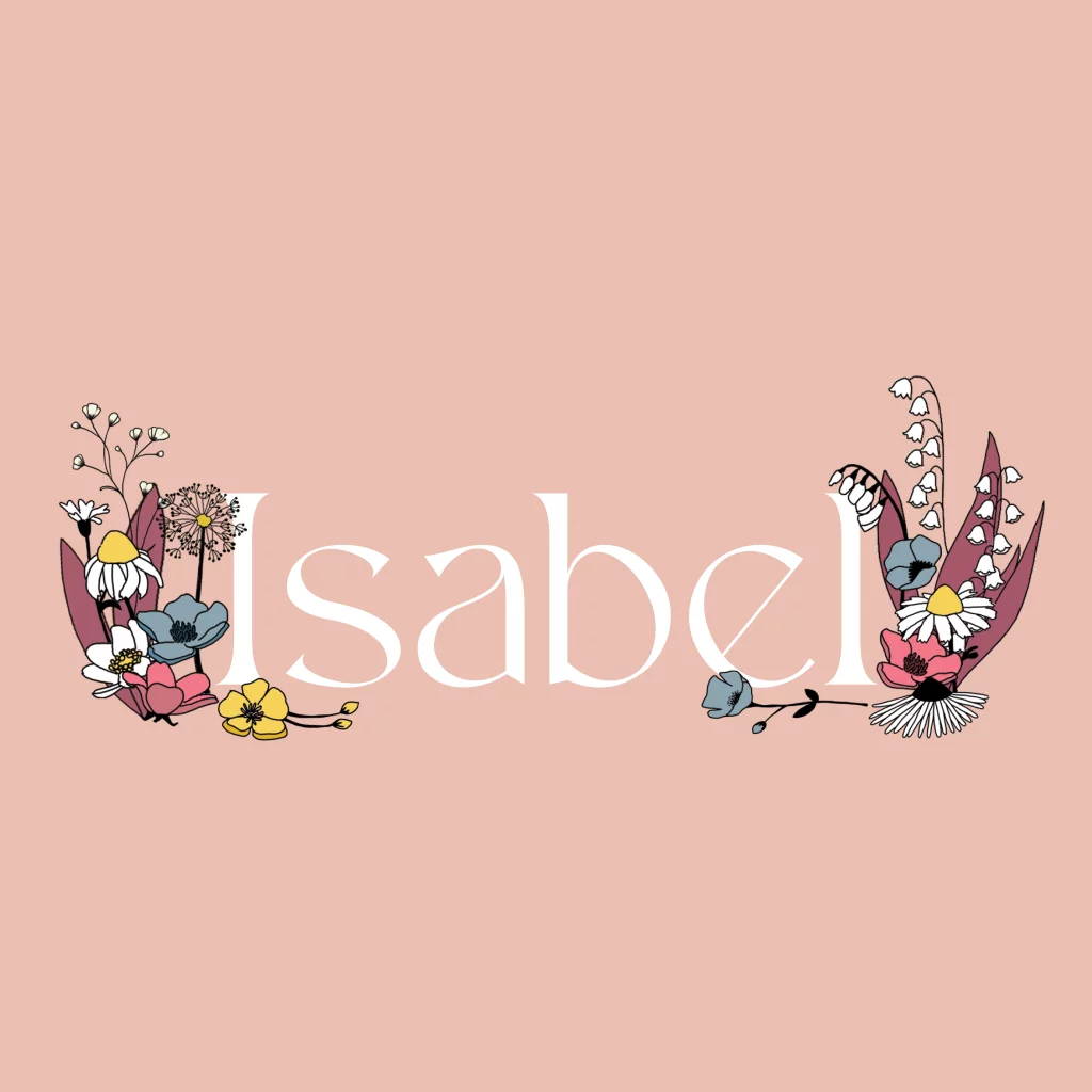 Oud roze geboortekaartje met bloemetjes, retro uitstraling en ronde hoeken.