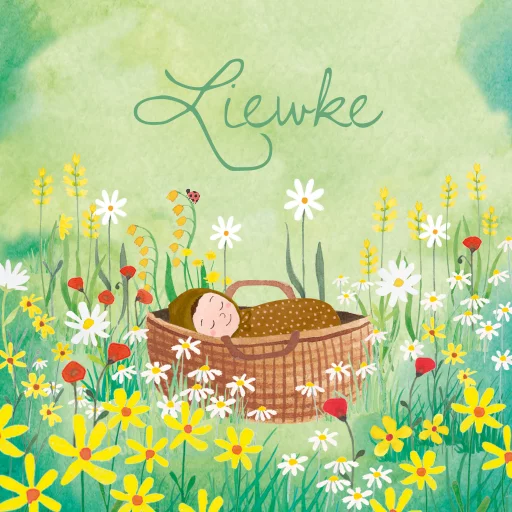 Canvas geboorte poster met houten latjes - Baby tussen de bloemen