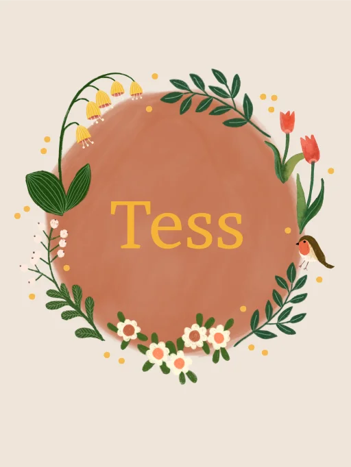 Geboorteposter 'Tess' met houten latjes. Bloemen cirkel lente