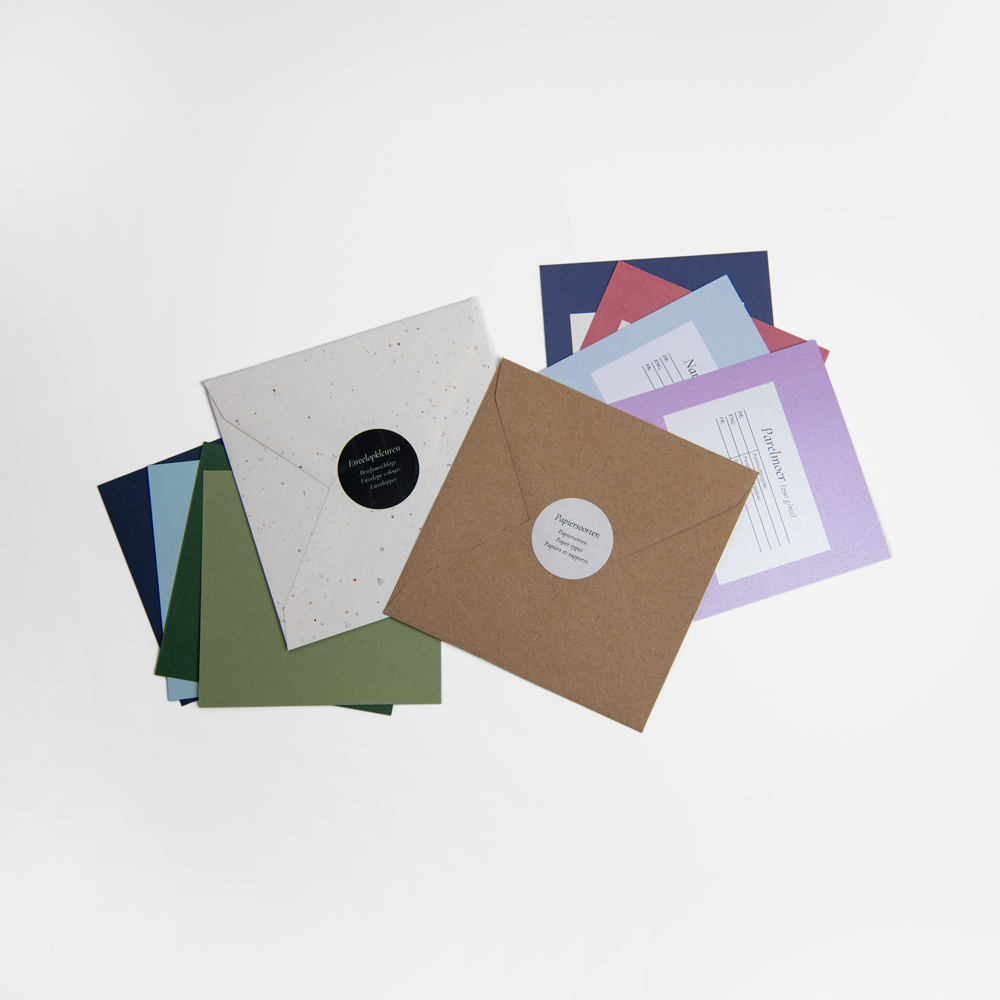 Bestel een proefdruk voor slechts € 2,49, inclusief samples van verschillende papiersoorten en envelopkleuren!