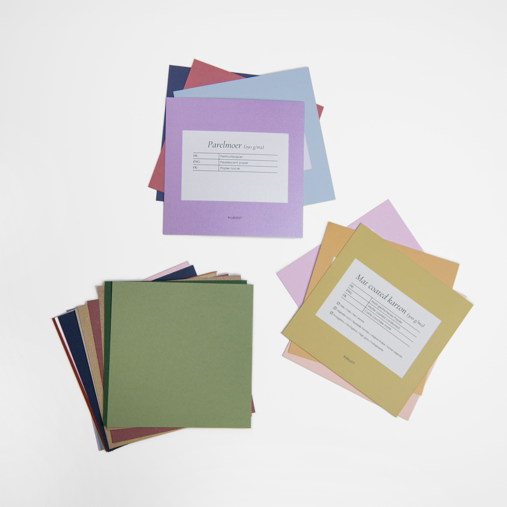 Deze complete stalenset bevat zowel alle 14 papiersoorten als 30+ envelopkleuren. Zo kun je moeiteloos combinaties maken en de beste keuzes voor jouw kaart selecteren.